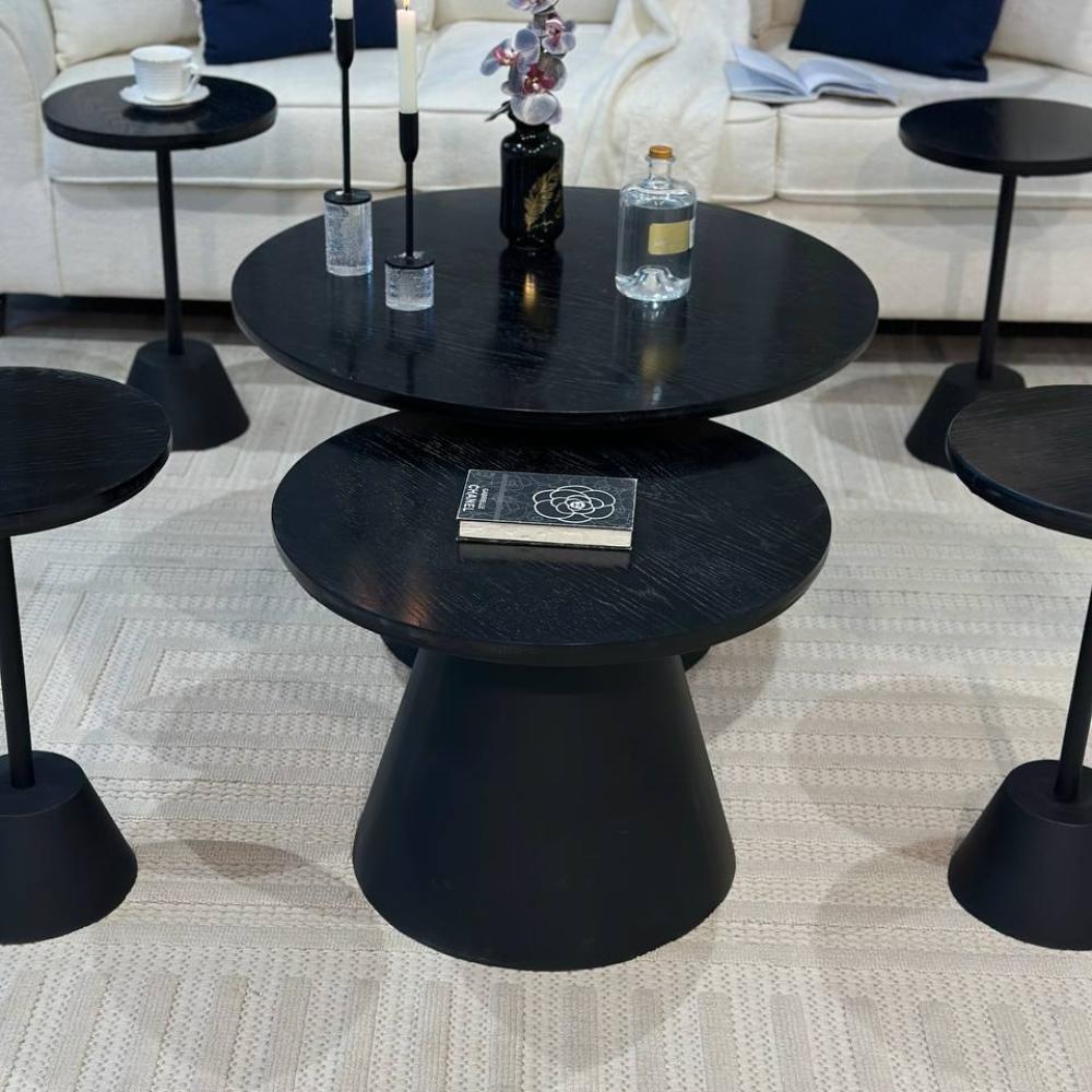 طقم طاولات ضيافة خشب أسود مع 4 خدمة