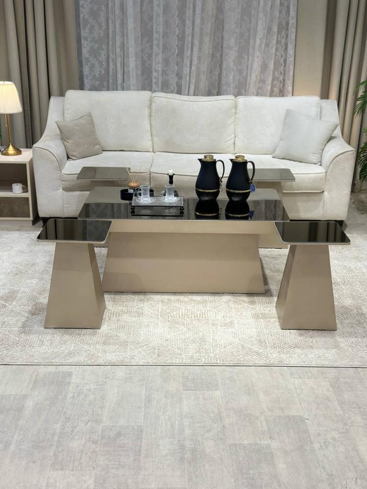 طقم طاولات كنب مع4طاولات خدمه لون شمباني