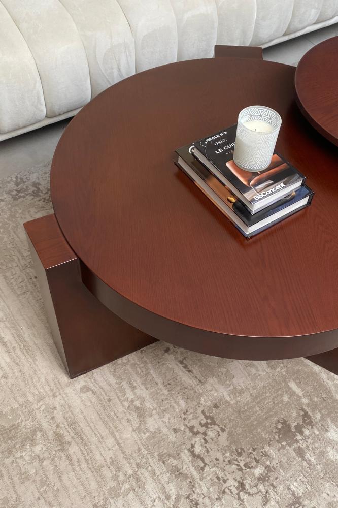 - الطاولة الجانبية المتداخلة: نصف قطرها يقارب 45 - سم وبنفس الارتفاع