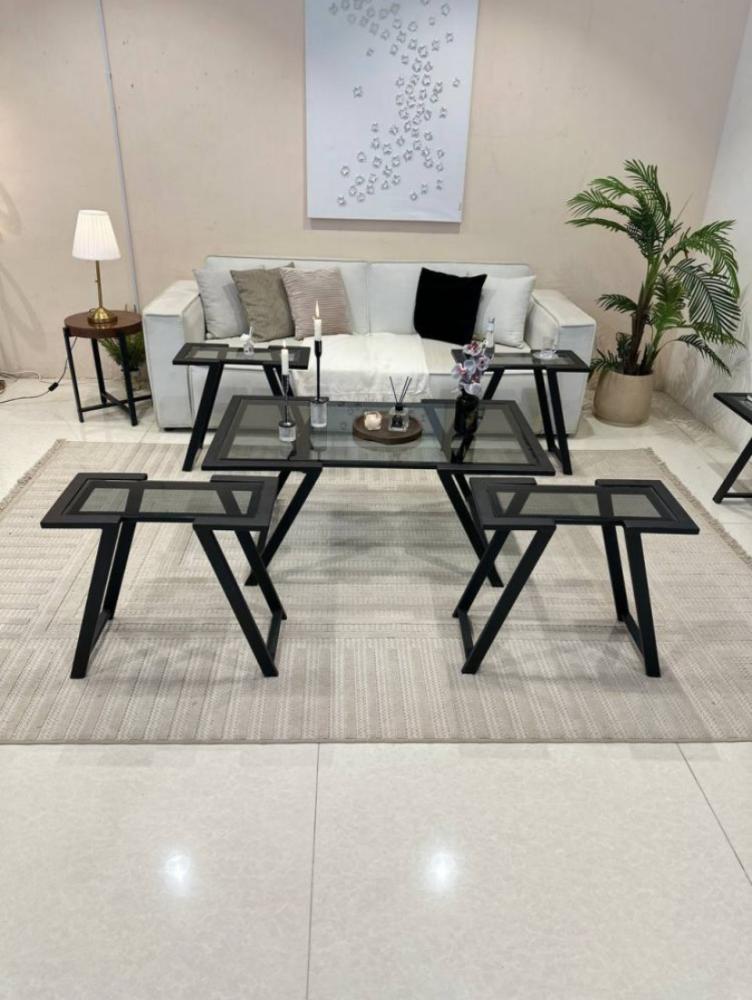 يتكون من طاولة رئيسية كبيرة الحجم وأربع طاولات خدمة صغيرة.