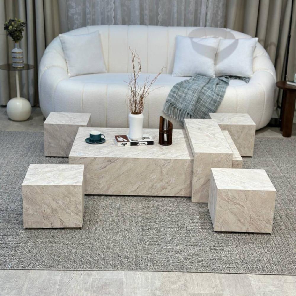 طقم طاولات ضيافة ارضي بديل رخام مع 4 خدمة