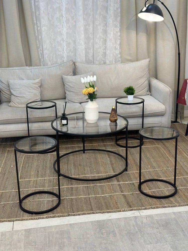 طقم طاولات ضيافه اسود رجاج شفاف