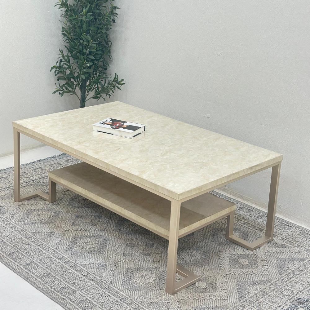 تعتبر هذه الطاولة القهوة الفاخر إضافة مثالية لأي غرفة معيشة. بينما هي مصنوعة من الحديد الصلب وبديل الرخام عالي الجودة. يضيف الشكل المستطيل للطاولة لمسة من الأناقة إلى أي مساحة، بينما يضمن البناء الرخام الصلب القوي المتانة وطول العمر.