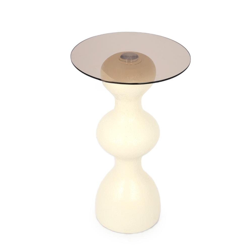 طاولة جانبية قزاز مع قاعدة رخام لون بيج