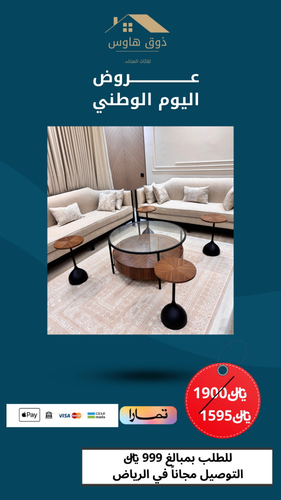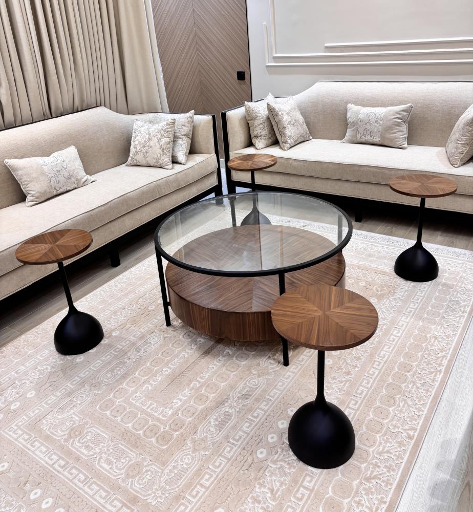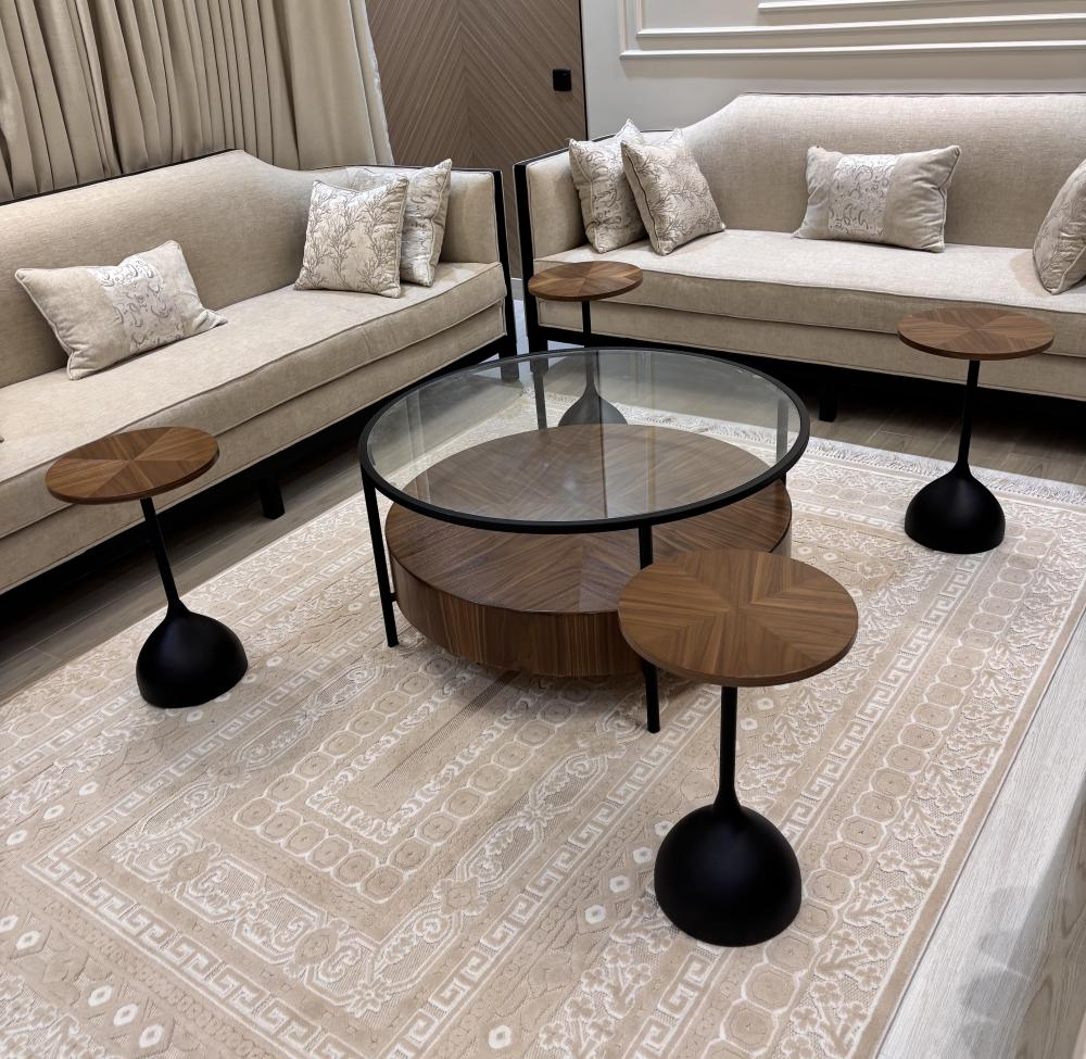 1. الطاولة الوسطية (الدائرية بالزجاج):