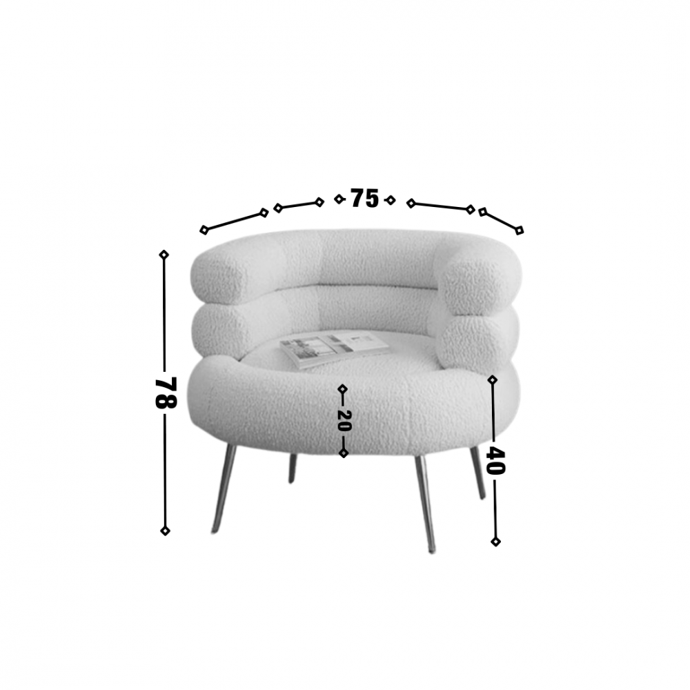 كرسي استرخاء بلون ابيص وخامة قماش بوكليه يوفر لك الراحة والاسترخاء. تصميمه الأنيق والعصري يجعله قطعة مميزة في أي مساحة داخلية. يتميز الكرسي بقماش بوكل ....
